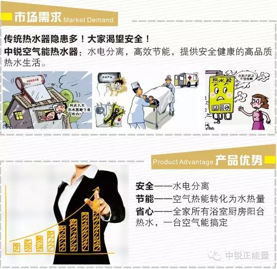 【民生必需&市場(chǎng)走向】人類生活離不開熱水。不管是家庭,還是商業(yè),熱水需求每日必須,而以往的煤氣熱水(耗能高、安全隱患)、電熱水器(耗電、漏電隱患)、太陽(yáng)能熱水(陽(yáng)光局限、空間局限)都有各自局限與隱患。人們渴望更加安全節(jié)能的熱水供應(yīng)方式?!藗兊目释袌?chǎng)的需求,也正是財(cái)富項(xiàng)目所在!