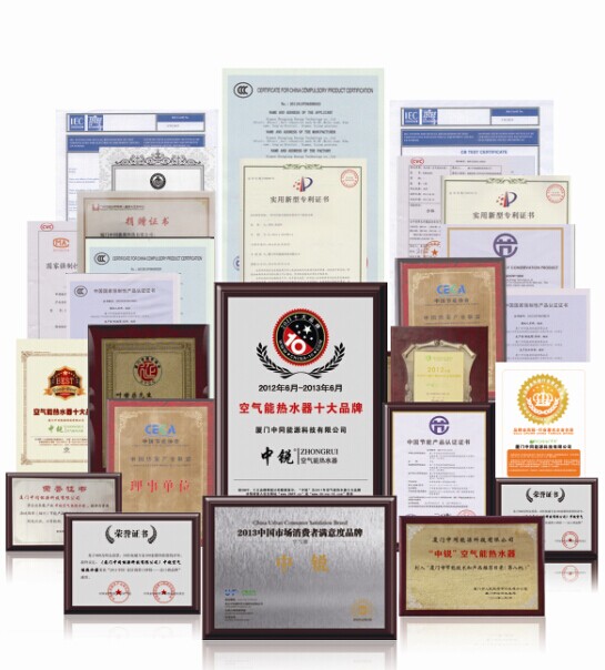 廈門鑫中銳能源科技有限公司成立以來一直推行“精益求精”的質(zhì)量管理方針,已全面通過ISO9001國際質(zhì)量管理體系和3C認(rèn)證,連續(xù)五年蟬聯(lián)中國空氣能十大品牌、獲封最受歡迎節(jié)能產(chǎn)品、中國家居消費(fèi)金口碑品牌、品牌企業(yè)愛心公益獎、中國市場最具消費(fèi)者滿意度品牌等等榮譽(yù)稱號,被列入“廈門市節(jié)能技術(shù)和產(chǎn)品推薦目錄”和“福建省節(jié)能產(chǎn)品推廣目錄”,獲評“廈門市著名商標(biāo)”,并榮獲中國節(jié)能產(chǎn)品認(rèn)證稱號。