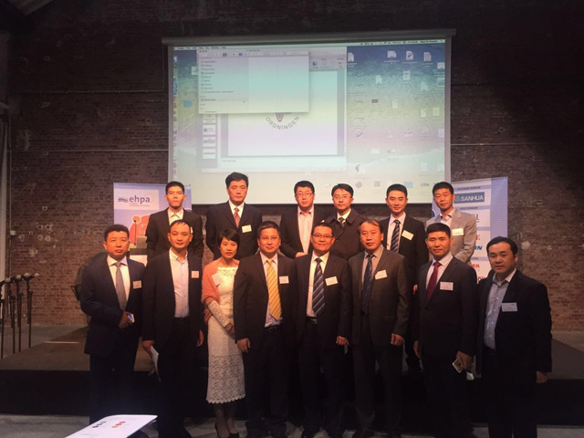 5月27日,葉總與考察團抵達本次赴歐考察的第一站——比利時。在這里,考察團參加了2015年歐洲熱泵協(xié)會及第八屆歐洲熱泵論壇,葉總代表中國空氣能熱水器企業(yè)上臺演講。